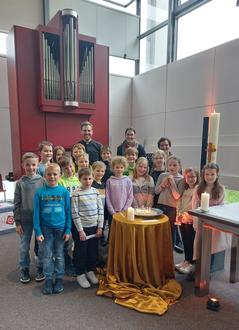 Und so war es allen natürlich auch wichtig diese intensive gemeinsame Zeit mit einer Abschlussfahrt zu beenden. Für die Kinder, Frau Maria Ruf und ein paar Eltern/Geschwister ging es am 16.05.23 am Nachmittag nach Kempten in die katholische Jugendstelle. Dort erwartete uns schon Pfarrer Johannes Prestele (Jugendpfarrer; gebürtig aus Gutenberg), welcher uns nach einer kurzen Führung durch das Gebäude einlud, eine gemeinsame Messe in der Jugendkirche „OpenSky“ mit ihm zu feiern. Die Kinder erlebten dort auf besondere Art und Weise, wie sie Gott ganz nahe sein können, wie sie ihre Sorgen und auch Freuden mit Gott teilen dürfen und dass Kirche vor allem auch für Kinder ein Ort ist, der einen stärkt. Sie konnten aktiv am Gottesdienst teilnehmen und so diesen mitgestalten. Es war für alle ein sehr besonderes Erlebnis.