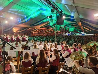 Zu guter Letzt wurde uns am Sonntag mit der Eröffnung des Festumzugs als Zugnummer 1 eine große Ehre zuteil - für die meisten Musiker sicherlich ein einmaliges Erlebnis. So genossen wir den Umzug durch die Straßen der Nachbargemeinde, bevor wir unser erfolgreiches Wochenende - und nicht zuletzt unser erstes Bezirksmusikfest nach dem eigenen - bei Blasmusik und Partystimmung mit den "Original Hopfenbläsern" am Sonntagabend ausklingen ließen.