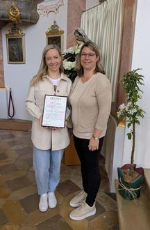 Simone Miller bedankte sich bei Stefanie Hildebrand mit einer Urkunde für 15 Jahre Kinderchorleitung