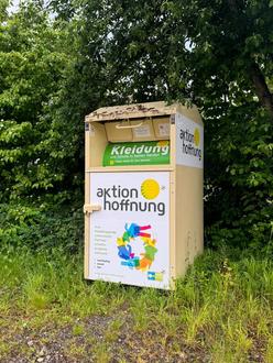 Ein Sammelcontainer für Altkleider steht in Obergermaringen am Friedhofsparkplatz der Kirche St. Michael. Hier können ganzjährig Kleiderspenden abgegeben werden. Säcke erhalten Sie u.a. im Gemeindeamt.