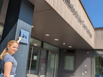Hr. Grübl, Direktor der Bayerischen Landeszentrale für politische Bildungsarbeit, und Regierungsschuldirektor Dr. Florian Bär fanden anerkennende Worte für das Engagement aller Beteiligten. Schon tags darauf suchte die SMV einen geeigneten Ort für das Siegel und wählte diesen an der Säule vor dem Haupteingang, wo es bald seinen festen Platz haben wird. Auch Herr Bürgermeister Helmut Bucher von der Gemeinde Germaringen ließ es sich nicht nehmen, zur Auszeichnung zu gratulieren.