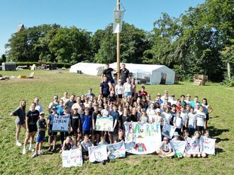 Am Donnerstagmorgen durften wir dann endlich unsere 57 Kinder bei leider wechselhaftem Wetter begrüßen. Nachdem die Kinderzelte aufgebaut waren, trafen wir uns das erste Mal gemeinsam zur Begrüßung an der Feuerstelle. Anschließend wurden die Teilnehmer*innen in ihre Zeltlagergruppen eingeteilt, in denen sie dann eine Führung über den gesamten Platz bekamen. Nach dem Mittagessen wurden zum Motto passende Teamfahnen bemalt und der Zeltlagerplatz wurde mit Lagerbauten vervollständigt. Vor dem Abendessen hingen wir in feierlicher Runde unseren Banner auf und führten eine „Überfällerprobe“ durch. Nach dem gemeinsamen Essen spielten wir noch eine Runde „Mein Betreuer kann“. Hierbei mussten die Kinder die Stärken ihrer Zeltlagergruppen-Betreuer richtig einschätzen. Danach startete die erste Nacht am Lagerfeuer mit viel Gesang und zahlreichen Überfällen.