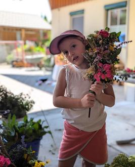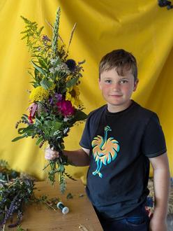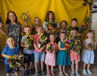 Mit großer Sorgfalt und Geschick hat jedes der Kinder unter Anleitung des Kinderteams seinen eigenen Kräuterboschen gebunden und dann stolz beim Fotoshooting in die Kamera gehalten.