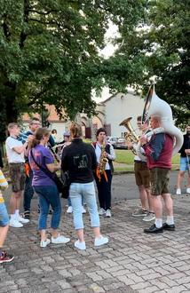 Am späten Nachmittag fuhr man zurück nach Chanverrie, wo dann abends der Abschiedsabend, diesmal wie alle Veranstaltungen, im Saal Henri-Victor Mallard stattfand. Hier sprach dann auch Bürgermeister Bucher die Einladung an die Franzosen aus, die Gemeinde Germaringen in zwei Jahren im August 2026 zu besuchen. Selbstverständlich durften beim Abschiedsabend weder das Bier aus Kaufbeuren fehlen noch der gewohnte Tanz mit der Brioche, der die Freundschaft zwischen den Gemeinden noch einmal besiegelte. Mit viel Tanz und Stimmung durch die örtliche Musikkapelle Y’aka jouer und DJ verging der Abend wie immer zu schnell.