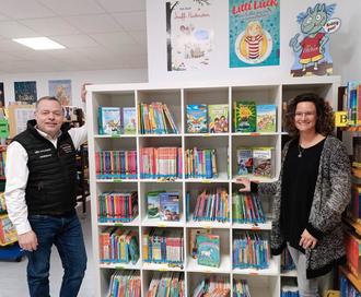 Das Autohaus Dokic hat der Kinderbücherei ein Regal gespendet, in dem die Erstlesebücher eingezogen sind.