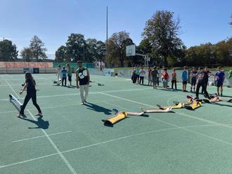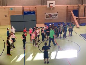 Das Gorilla-Team - Profis in den Bereichen Skateboarden, Kendama, Breakdance, Fußballfreestile, Parcour, Frisbeetricks und Beatbox – brachten den Kids in den vorher genannten, coolen Sportarten tolle Tricks bei. In der Turnhalle überwanden die Kinder alle möglichen Parcourhindernisse. Die Beatboxer ließen im Musiksaal mit den geübten Geräuschen akustisch z.B. Hubschrauber abstürzen oder Reißverschlüsse auf- und zugehen. In der Aula übten die Breakdancer coole Moves zu brechenden Beats. Beim Frisbee und beim Fußball beeindruckten sie ein paar Zuschauer aus dem Dorf. Die Straße vor der Schule wurde extra abgesperrt, damit die Gorillas dort einen krassen Skatepark für ihren Workshop aufbauen konnten. Am Nachmittag durchliefen die Kinder sogenannte Ateliers: Kendama, Smooties, Balance, Braingym und Entspannung.