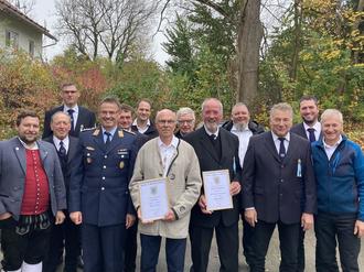 Zum Abschluss der Versammlung berichtete Vorstand Hölzle von einer Einladung zur Besichtigung des Fliegerhorstes in Kaufbeuren. Zusammen mit den beiden Germaringer Veteranenvereinen kann an diesem Tag auch das Heimatmuseum in Gutenberg besichtigt werden. Mit jeweils einer Urkunde wurden zwei ausscheidende Vorstandschaftsmitglieder geehrt. Heinz Gastl für 10 Jahre Kassier sowie Georg Birzle für 16 Jahre Fähnrich und Fahnenbegleiter. Mit Dankesworten für die Mitwirkung aller Beteiligten bei der Durchführung des Jahrestages beendete Hölzle die Versammlung. Ein besonderer Dank galt den Wirtsleuten der Rössle Stubn für die Bereitschaft sehr kurzfristig die Bewirtung der Vereinsmitglieder zu übernehmen.