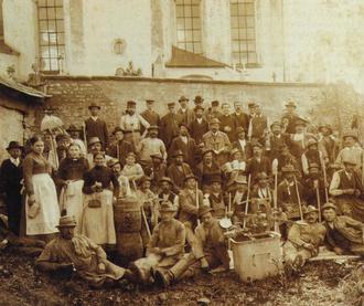Die Dorfgemeinschaft Ketterschwang beim Bau der Wasserleitung im Jahr 1896.