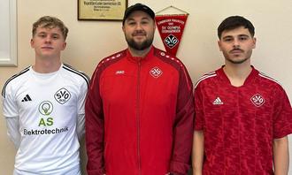 Trainer Otto Ullmann begrüßt die Neuzugänge Julian Renz (links) und Mirza Velagic.