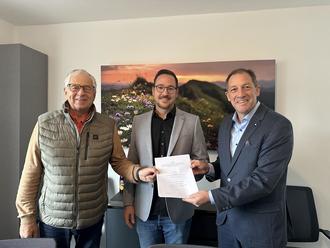 Gut lachen hatten die beiden Bürgermeister. Durch die gemeinsame Ausschreibung konnte man mit der Vergabe an die Allgäu-DSL eine sehr wirtschaftliche und dazu regionale Lösung erzielen. Geschäftsführer Matthias Marquardt freut sich über die Zusammenarbeit. Von links: 2. Bgm. Anton Trautwein von Oberostendorf, Geschäftsführer Allgäu-DSL Matthias Marquardt, 1. Bgm. Helmut von Germaringen.