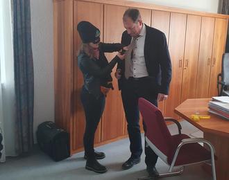 In diesem Jahr fand endlich wieder ein großer Rathaussturm statt. Um 11:11 Uhr wurde das Büro von Bürgermeister Bucher durch maskierte Panzerknackerinnen gestürmt und dieser als Geisel an den Eingang der Gemeinde gefesselt.