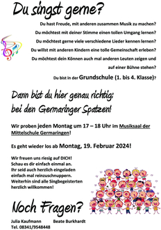 Es geht wieder los: jetzt mitsingen beim Kinderchor "die Germaringer Spatzen"