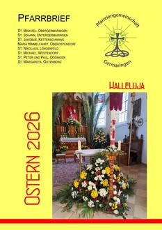 Zum Palmsonntag haben Sie wieder den Osterpfarrbrief in Ihrem Briefkasten. Werfen Sie doch einen Blick hinein! Themen wie „Der Bauernjahrtag in Oberostendorf“, Besuch der Kleidersammelstelle in Ettringen“, „Über die Kirche St. Georg“, vielfältige und wertvolle Beschäftigungen in den Pfarreien mit unseren Kindern und einiges mehr, all das kann auch für Kirchenfremde interessant sein. Nutzen Sie die Gelegenheit, sich über das aktive Dorfleben in unseren acht Pfarreien zu informieren.