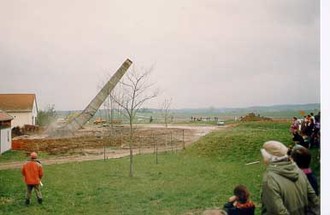 30 Jahre ist es nun her, dass dieser dem Erdboden gleichgemacht wurde. Am 14.4.1994 hat für den riesigen Schornstein die letzte Stunde geschlagen. Viele Germaringer schauten der Sprengung zu. Als das dritte Mal gehupt wurde, fiel der Turm genau so, wie es der Sprengmeister geplant hatte. Eine 147-jährige Firmengeschichte ging nach vier Generationen zu Ende.