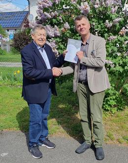 Gerhard Klug, erster Vorsitzender des AWO-Ortsverbandes Gessertshausen, überreichte Johann Wagner die Urkunde und bedankte sich von ganzem Herzen für seine 25-jährige Treue und sein herausragendes Engagement.