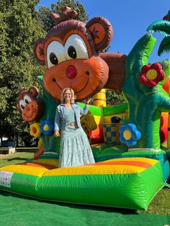 Unsere Stellv. Kita-Leitung Frau Gebele eröffnete die Hüpfburg