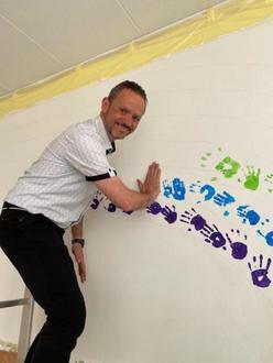 Unser Bürgermeister verewigte sich auch auf unserer Regenbogenwand