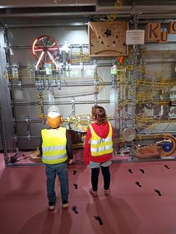 Wow, hier gibt es sooo viel zu sehen. Im Kinderreich durften wir so viel ausprobieren. Es gab mehrere Kugelbahnen, eine hing sogar an der Decke. Wir durften einen Flaschenzug bedienen, das Spiegelparadies erkunden, durften am Klavier und auf einem sehr großen Xylophon spielen, stiegen aufs Feuerauto und sausten die Feuerwehrstange hinunter. Einige Kinder bauten sich eine eigene Kugelbahn zusammen.