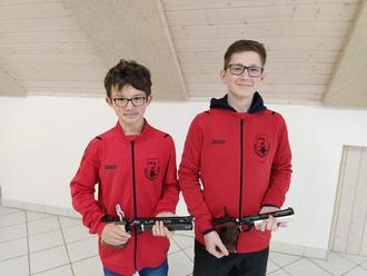 Die beiden Schüler haben auf dem Weg zu ihrem Erfolg eine steile Entwicklungskurve in der laufenden Saison hingelegt. Lars steigerte sich von Ergebnissen knapp über 100 Ringe auf zuletzt 170 Ringe, was neben konsequentem Training auch auf die von der Vorstandschaft neu angeschaffte Jugendpistole zurückzuführen ist. Noch steiler verlief die Entwicklung von Johannes, der die Pistole im Januar zum ersten Mal in die Hand nahm, da er sich im Schulsport verletzte und deswegen nicht mit dem Gewehr schießen konnte. Platz 1 und 2 bei der Gaumeisterschaft, eine Nominierung für den Gau- und Bezirkskader, Sieg mit der Luftpistole beim Shooty Cup auf Gauebene und nun Platz 1 und 2 bei der schwäbischen Meisterschaft motivieren sicherlich auch weiterhin mit den verschiedenen Trainern im Luftpistolenbereich das Wissen und die Technik zu vertiefen.