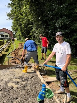 Damit rechtzeitig zum Pflichtspielstart am 17.07.2024 die Sportanlage des SV Gessertshausen wieder in neuem Glanz erstrahlen kann, wurden an diesem Wochenende zahlreiche freiwillige Helfer zusammengetrommelt. Neben den umfangreichen alljährlich anfallenden Arbeiten, konnten auch neue Projekte umgesetzt werden. Zum einen wurde ein Fundament für die geplante Stadionsprecherkabine gegossen und zum anderen mehr Platz für neue Werbebanden geschaffen. Für ausreichend Verpflegung mit Essen und Trinken wurde bei diesen schweißtreibenden Arbeiten natürlich gesorgt.
