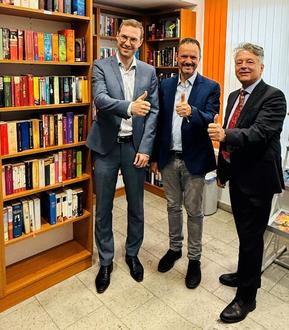Bild von links: Sebastian Mangold (Raiffeisenbank), Jürgen Mögele (1. Bürgermeister Gessertshausen), Karl Rau (Raiffeisenbank)