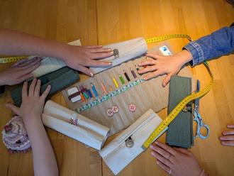 Wir, sechs Mädchen, bekamen eine Nähmaschine erklärt und wählten Stoff, Knopf und Band aus. Dann begannen wir: Wir setzten uns an die Nähmaschinen und zauberten schöne Stiftrollen. Frau Walter half uns, wenn wir z.B. sehr viel Stoff übereinander nähen mussten. Mir hat der Nähkurs sehr gut gefallen und ich kann ihn Kindern, die gerne basteln und mal nähen wollen, weiterempfehlen.
