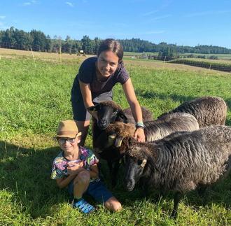 Am 18.08.2025 von 09.30 Uhr bis 12.00 Uhr durften wir die Krainer Steinschafe von Julia Gaugenrieder in Deubach auf der Schafweide besuchen. Wir waren 5 Kinder.