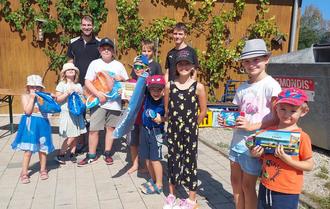 Nach einer Stunde kam ein Mitarbeiter vom Wagner-Mark, der Zettel für eine Tombola verteilte. Als der Flohmarkt sich dem Ende neigte ging die Tombola los. Es gab viele Gewinne und drei Hauptpreise. Der dritte Platz bekam einen Hutner Gutschein für 20 Euro. Der zweite Platz bekam eine Radtasche und der Erste bekam einen Rucksack.