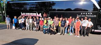 Bild: Die Reisegesellschaft vor dem Omnibus beim Brauhaus Herrsching