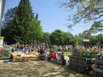 Seit vielen Jahren beteiligen wir uns am „Aktions-Tag Musik", einer Aktion der Bayerischen Landeskoordinierungsstelle für Musik in Bayern. Viele Mamas, Papas, Omas und Opas sowie andere Gäste sind unserer Einladung, einem Terrassenkonzert beizuwohnen, nachgekommen.
