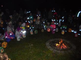 Dann war es endlich so weit. Nach den Herbstferien durften die Kinder mit ihren Eltern und Geschwistern zum Martinsumzug kommen. Bei Anbruch der Dunkelheit trafen sie sich mit leuchtenden Laternen.