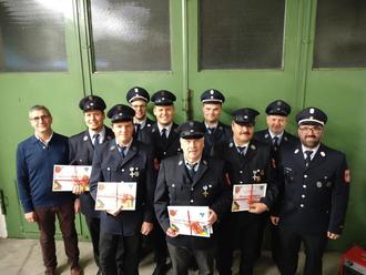 Für 25 Jahre aktiven Dienst wurden Georg Schweinberger, Stefan Fischer und Florian Abold geehrt. Auf über 40 aktive Dienstjahre darf Josef Guggenberger stolz zurückblicken. Richard Wagner wurde für seine langjährige Tätigkeit als stellvertretender Kommandant und Gruppenführer geehrt. Philipp Teut hat bereits in jungen Jahren als Gruppenführer Verantwortung übernommen. Aufgrund seines anstehenden Umzugs wird er der Wehr jedoch nicht mehr regelmäßig zur Verfügung stehen.