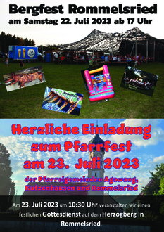 Am 23. Juli 2023 um 10:30 Uhr veranstalten wir einen festlichen Gottesdienst auf dem Herzogberg in Rommelsried.