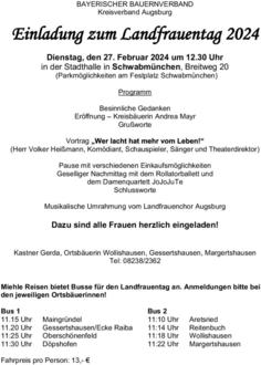 Anmeldung bis 15.02.2024 bei Walburga Dörle Tel.: 08294/610