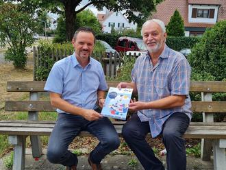 Bürgermeister Jürgen Mögele begrüßt den neuen Leiter der Volkshochschule Gessertshausen.