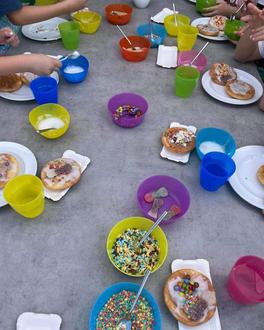 Wer wissen wollte, was ein Bäcker nachts macht und wie es in einer echten Backstube aussieht, der war beim Besuch der Bäckerei Niedermair in Diedorf genau richtig! Nach einer Führung durch die Backstube wurde unter fachkundiger Anleitung Zuckerguss hergestellt und die Kinder konnten Amerikaner damit verzieren. Beim zweiten Termin wurde sogar eine Textilschürze mit Textilfarben bemalt. Eine tolle Aktion, die den Kindern viel Spaß gemacht hat.