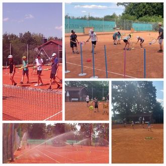 Zahlreiche Kinder waren gekommen um an diesem sehr sonnigen Tag in den Tennissport hineinzuschnuppern. Zu Beginn wurden wir in drei Gruppen je nach Alter eingeteilt und es erwarteten uns drei Stationen. Wir bekamen jeder einen passenden Schläger und dann gings auch schon los. Bei der ersten Station ging es um die Hand-Schläger-Koordination. Wir übten mit unserem Schläger einen Ball zu balancieren. Dann durften wir mit dem Ball zielen üben. Hierzu mussten wir in aufgehängte Ringe treffen – gar nicht so einfach. Dann gings weiter zu Station zwei, dort lernten wir in verschiedenen Übungen mit der Vorhand zu schießen. Bei der letzten Station haben wir den Rückhandschlag geübt. Hier mussten wir den Schläger mit zwei Händen greifen. Zwischen den Stationen gab es immer eine Erholungspause mit Getränken, Wassermelone, Eis und wer wollte konnte auch unter dem Wassersprenger durchlaufen, der den Platz bewässerte. Es waren tolle drei Stunden in denen wir Tennis spielen durften und es hat allen sehr viel Spaß gemacht. Vielen Dank an das tolle Angebot.