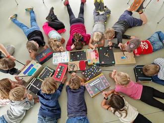 Gegen Ende hatten wir noch Besuch von einem Flaschengeist, dessen Flasche wir noch verzierten. Dann haben wir ein Zauberbuch bekommen. Damit war unsere Zauberkiste komplett. Jetzt können wir unseren Freunden, Geschwistern und Eltern etwas vorzaubern. Es hat Spaß gemacht.