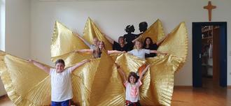 Am Montag, dem 07.08.2023 trafen sich neun Mädchen, im Vereinsheim Wollishausen, um in die Welt des orientalischen Tanzes zu tauchen. Rita Hof, die Kursleiterin, liegt besonders die Gemeinschaft in der Gruppe am Herzen und findet, dass der orientalische Tanz für jeden geeignet sei, ob klein, ob groß, ob dick oder dünn. Unter Frau Hofs Leitung tanzten wir vier verschiedene Tänze mit verschiedenem Zubehör. Zuerst mit goldenen Isisflügeln, dann mit Tüchern. Der Schlangentanz wurde mit Teelichtgläsern getanzt und zu dem Lied Waka Waka, von Shakira haben wir kein Zubehör bekommen. Alle hatten viel Spaß, Danke für den tollen Nachmittag!