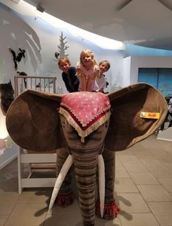 Dort durften wir auf die lebensgroßen Tiere sitzen und uns fotografieren lassen. Über eine Rutsche gelangte man in die Bärenfabrik und zu den Schaufenstern mit den verschiedensten Figuren, die die Firma Steiff im Laufe der Jahre hergestellt hatte. Im angrenzenden Shop konnte man sich eine Erinnerung an das Museum kaufen.