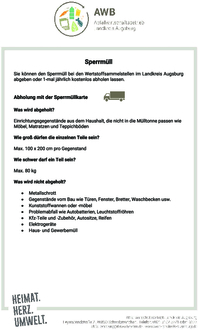 Sie können den Sperrmüll bei den Wertstoffsammelstellen im Landkreis Augsburg abgeben oder 1-mal jährlich kostenlos abholen lassen.