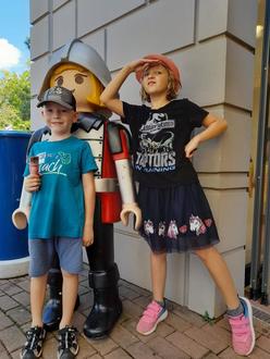 Als erstes gabs Ausstellungen mit Playmobilsets. Dann sind wir zu dem Tretbootstand gegangen. Das hat Spaß gemacht. Als nächstes sind wir zu einem tollen Wasserspielplatz marschiert. Das Wasser war eiskalt. Weiter gings dann zur Arche Noah, wo die Tiere gekommen sind. Man konnte auch Pferde striegeln und es war sogar ein Fohlen mit dabei. Eine Ritterburg gab es auch. Die Ritter standen am Tor. Dann gab es für uns zuerst mal ein Eis zur Abkühlung, bevor es weiter zum Rutschen ging. Auf ein Piratenschiff sind wir auch gegangen. Arrrr… Einen Kletterwald gab es auch. Zum Schluss waren wir noch bei den Dinos.