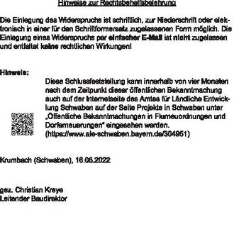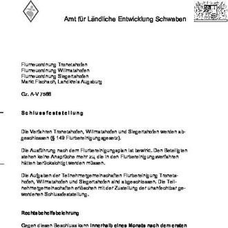 Schlussfeststellung Die Verfahren Tronetshofen, Willmatshofen und Siegertshofen werden abgeschlossen