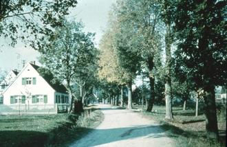 Im Jahr 1955 war die Straße von Deubach nach Gessertshausen noch von einer stattlichen Allee und Streuobstwiesen gesäumt.