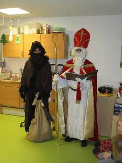 Am Mittwoch, 06. Dezember ´23 kam der Nikolaus in der Kita zu Besuch. Erwartungsvolle Augen betrachteten ihn und nachdem die Kindergartengruppen Lieder, Geschichten oder Fingerspiele vorgeführt hatten, bekam jedes Kind ein kleines Tütchen, gefüllt mit Apfel und Schokonikolaus. In der Krippe kam er im Garten bzw. an der Terrasse vorbei und hatte auch hier kleine Geschenke abgeben. Auch die Hortkinder erhielten ein gefülltes Tütchen.