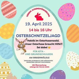 Am Samstag, 19. April, findet von 14-17 Uhr die Osterschnitzeljagd im Birkenwäldle (gegenüber Sportplatz Ustersbach) statt.