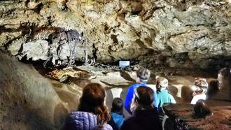 Und so ging es am letzten Dienstag in die schaurigschöne Unterwelt. Als Eintrittskarte in die Welt der Finstenis gab es eine Leselupe für jedes Kind. Vom Höhlenführer Bernie wurden alle Kinder mit mit Stirnlampen ausgerüstet. Und dann endlich ging es in die Höhle. Spannende Geschichten über die Höhlenbären, wie es zum Namen Teufelshöhle kam, glitzernde Tropfsteine, geheimnisvolle Schatten und völlige Dunkelheit, als alle Lichter ausgingen, hielten die Kinder in Atem.