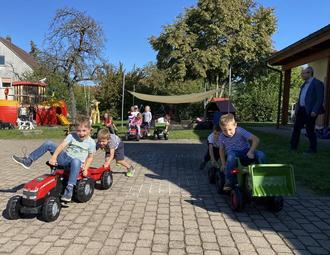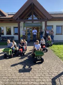 Als Dank für ihr Engagement überreichten Michael Knörlein und Martin Beck von der BayWa am 28.09.2023 dem Haus für Kinder Pinzberg eine großzügige Spende in Höhe von 200 €. Zusätzlich erhielten die Kinder fünf brandneue Trettraktoren im Wert von 800 €, die sie voller Freude entgegennahmen und direkt auf dem Gelände der Kindertageseinrichtung in einem aufregenden Wettrennen ausprobierten.