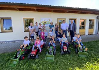 BayWa eröffnet neue Filiale in Forchheim und überrascht Kinder im Haus für Kinder Pinzberg mit Spende und Trettraktoren