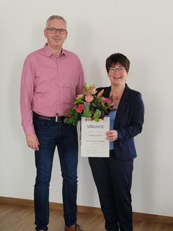 Im Rahmen einer kleinen Feierstunde überreichte Gemeinschaftsvorsitzender Bernd Drummer an die Mitarbeiterin im Personalamt, Frau Christiane Neubauer, einen Blumenstrauß und gratulierte zum 25-jährigen Dienstjubiläum.